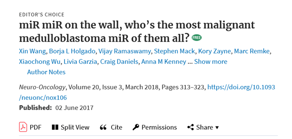 And here’s one from the fairy tale “Snow White and the Seven Dwarfs”. Here, miR is a biomolecule, and its role in medulloblastoma (a type of brain cancer) is explained.